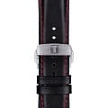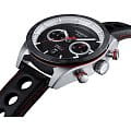 Брендовый аксессуар отражает стиль оформления, присущий гоночным машинам 60-х годов. Модель отличается характерным ребристым циферблатом и красными деталями, оригинальности придаёт керамический безельБезельВнешний ободок, закрепляющий стекло. В спортивных часах так называется поворотное кольцо с делениями на циферблате, выполняет роль таймера – замеряет отрезки времени на шкале. Неподвижный безель – элемент декора. Однонаправленно вращающийся безель на дайверских часах позволяет фиксировать моменты погружения и выныривания на поверхность.. Лучшим дополнением к общей картине стал кожаный перфорированый ремешок с красной прострочкой. Часы оснащены автоматическим механизмом ETA Valjoux A05.H21ValjouxПремиальный калибр от швейцарской компании ETA c уникальной отделкой механизма. Отличается увеличенным запасом хода от 45 до 60 часов, в зависимости от калибра, точность хода составляет +/- 5 секунд в сутки. премиальной категории с запасом хода 60 часов. Прозрачная задняя крышка корпуса. Стекло из сапфира с антибликовым покрытием. Сохранение водостойкости при давлении 10 бар. Корпус из нержавеющей стали 316L. Люминесцентная подсветкаЛюминесцентное покрытиеПозволяет считывать показания времени в темноте. Производители наносят на стрелки, часовые индексы, безель или поверхность циферблата светонакопительный состав, дающий холодное свечение.. Секундомер, хронографХронографФункция позволяет измерять отрезки времени с особой точностью: часы, минуты, секунды. Верным признаком хронографа является наличие на циферблате 3 дополнительных окошек-счётчиков., отображение числа. . Габариты: 45 x 45 x 15,8 мм.