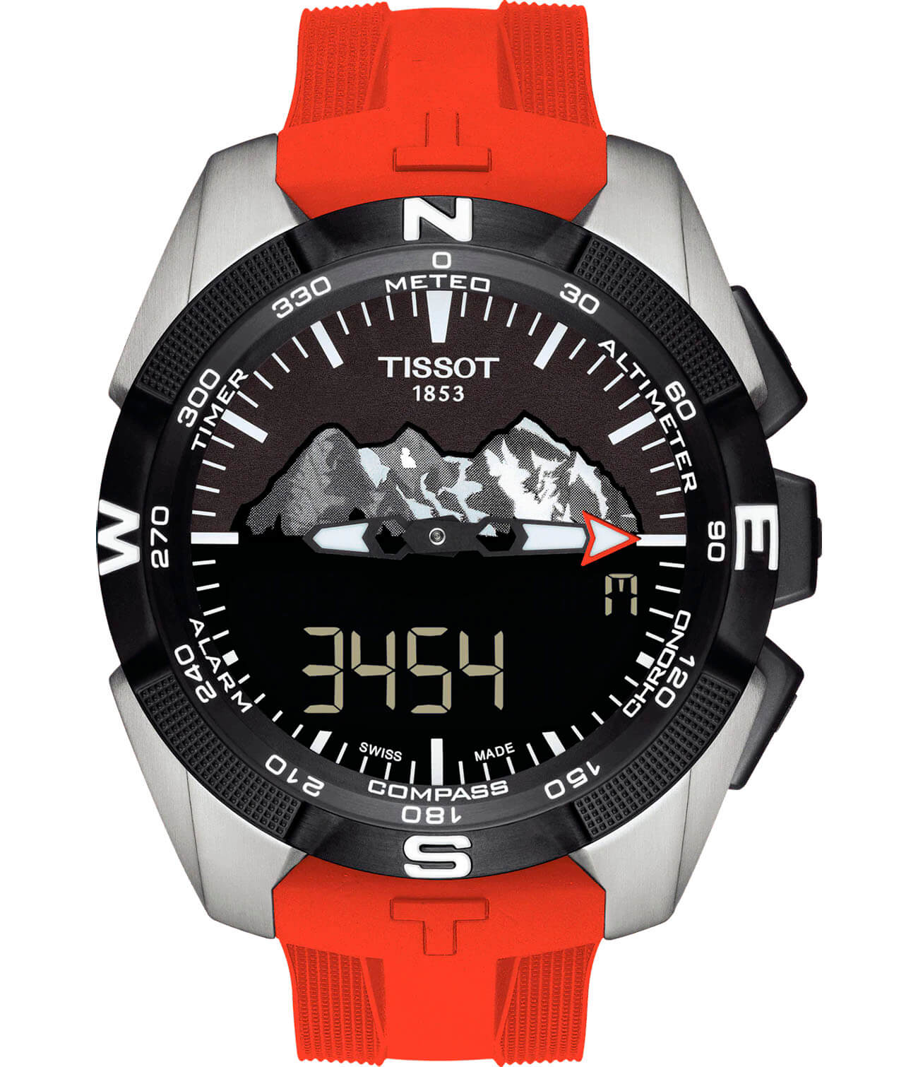 Мужские швейцарские часы из коллекции T-Touch Expert Solar посвящены сотрудничеству бренда Tissot со знаменитой железнодорожной компанией Jungfraubah. Наручные часы Limited Edition имеют оригинальную гравировку-логотип на задней крышке. На циферблате изображены горы. Это модель с тактильным сапфировым стеклом, позволяющая управлять широким функционалом с помощью пальцев. Возможностей очень много: компас, барометр, хронографХронографФункция позволяет измерять отрезки времени с особой точностью: часы, минуты, секунды. Верным признаком хронографа является наличие на циферблате 3 дополнительных окошек-счётчиков., высотомер, секундомер, GMTGMTОтображение времени второго часового пояса.Такая функция особенно актуальна для путешественников и бизнесменов,которые общаются с людьми из разных стран,теперь вы всегда будете знать,какой час у вашего партнёра или близкого человека., будильник. Внутри титанового корпуса находится высокоточный кварцевый калибр ETA E84.301. Ремешок из силикона обеспечивает комфорт при ношении. Технология . Водонепроницаемость до 10 бар. Габариты: 45 x 45 x 13 мм.