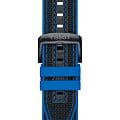 Задняя крышка имеет гравировку - номер "12", под которым выступает знаменитый спортсмен. Броская модель с оригинальным исполнением циферблата станет отличительной деталью вашего образа, динамичности придают синие элементы. Всё напоминает о гоночных мотоциклах. Необычный безельБезельВнешний ободок, закрепляющий стекло. В спортивных часах так называется поворотное кольцо с делениями на циферблате, выполняет роль таймера – замеряет отрезки времени на шкале. Неподвижный безель – элемент декора. Однонаправленно вращающийся безель на дайверских часах позволяет фиксировать моменты погружения и выныривания на поверхность. имитирует тормозной диск, счётчики хронографаХронографФункция позволяет измерять отрезки времени с особой точностью: часы, минуты, секунды. Верным признаком хронографа является наличие на циферблате 3 дополнительных окошек-счётчиков. сделаны под приборную панель, узор ремешка навевает мысли о протекторе шины. Высокую точность хода обеспечивает кварцевый калибр ETA G10.212. Сапфировое стекло с антибликовым покрытием. Чёрное PVD-покрытиеPVDУльтратонкое покрытие наносится в технике вакуумного напыления, сочетает в себе нитрид титана особой прочности со слоем золота или оксида хрома. Несёт в себе декоративную или защитную функцию.. Люминесцентная подсветкаЛюминесцентное покрытиеПозволяет считывать показания времени в темноте. Производители наносят на стрелки, часовые индексы, безель или поверхность циферблата светонакопительный состав, дающий холодное свечение.. Водонепроницаемость 100 метров. Секундомер, тахиметрТахиметрРазмеченная шкала, располагается на ободке или безеле часов. Тахиметр позволяет рассчитать скорость на определённом участке пути, расстояние измеряется в километрах или милях., отображение даты. Эксклюзивная упаковка в виде шлема. Габариты: 47,6 x 43 x 12,3 мм.