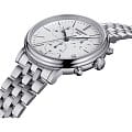 Модель не отличается богатым декором или броскими деталями, её особенность заключается в наличии полезного функционала и минималистичном строгом дизайне. Наручные часы привлекают серебристыми переливами корпуса и браслета, циферблат было решено оставить в белом цвете. Они комплектуются высокоточным кварцевым механизмом ETA G10.212. Сохранение водонепроницаемости при давлении до 50 бар. Надёжное сапфировое стекло. ХронографХронографФункция позволяет измерять отрезки времени с особой точностью: часы, минуты, секунды. Верным признаком хронографа является наличие на циферблате 3 дополнительных окошек-счётчиков., секундомер, отображение даты. . Габариты: 41 x 41 x 10,2 мм.