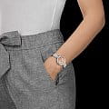 Швейцарские женские часы Tissot Flamingo T094.210.11.336.00, кварцевый механизм с высокой точностью. Корпус часов изготовлен из нержавеющей стали. Циферблат украшен бриллиантами. Окошко даты находится в положении 6 часов. Класс водозащиты: 50 метров, позволит защитить корпус от случайных брызг или капель дождя. Стальной браслет на застёжке-бабочке с кнопкамиЗастёжка "бабочка"Такой вид застёжки дополняется предохранителями, помогающими избежать случайного раскрытия браслета. Обладают изящным исполнением. .