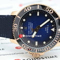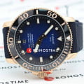 Аксессуар характеризуется как дайверские часы, водонепроницаемость сохраняется при давлении до 30 бар на глубине 300 метров. Модель имеет чёрно-синие исполнение, последний оттенок был реализован благодаря PVD-покрытиюPVDУльтратонкое покрытие наносится в технике вакуумного напыления, сочетает в себе нитрид титана особой прочности со слоем золота или оксида хрома. Несёт в себе декоративную или защитную функцию.. Внутри герметичного корпуса с завинчивающейся заводной головкой находится популярный швейцарский калибр Powermatic 80Powermatic 80Эксклюзивный калибр от швейцарской компании ETA с увеличенным запасом хода до 80 часов за счёт удлинённой заводной пружины. Характеризуется улучшенной системой спуска со сниженным трением. с запасом хода до 80 часов. Прозрачная задняя крышка. Керамический безельБезельВнешний ободок, закрепляющий стекло. В спортивных часах так называется поворотное кольцо с делениями на циферблате, выполняет роль таймера – замеряет отрезки времени на шкале. Неподвижный безель – элемент декора. Однонаправленно вращающийся безель на дайверских часах позволяет фиксировать моменты погружения и выныривания на поверхность.. Гибкий каучуковый ремешок. Люминесцентная подсветкаЛюминесцентное покрытиеПозволяет считывать показания времени в темноте. Производители наносят на стрелки, часовые индексы, безель или поверхность циферблата светонакопительный состав, дающий холодное свечение.. Окошко даты. Габариты: 43 x 43 x 12,7 мм.