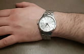 Модель оснащена крупным корпусом из нержавеющей стали 316L. Швейцарский кварцевый калибр ETA F06.115 высоко ценится за безупречную точность хода. Сапфировое стеклоСапфировое стеклоПрочный и надёжный материал из кристалла сапфира синтетического происхождения, характеризующийся особой твёрдостью и устойчивостью к царапинам и повреждениям. отличается 100% устойчивостью к царапинам. Стальной браслет дополнен надёжной застёжкой «бабочка» с кнопкамиЗастёжка "бабочка"Такой вид застёжки дополняется предохранителями, помогающими избежать случайного раскрытия браслета. Обладают изящным исполнением. , препятствующей случайному расстёгиванию часов. На метке 3 часов размещена апертура даты.
