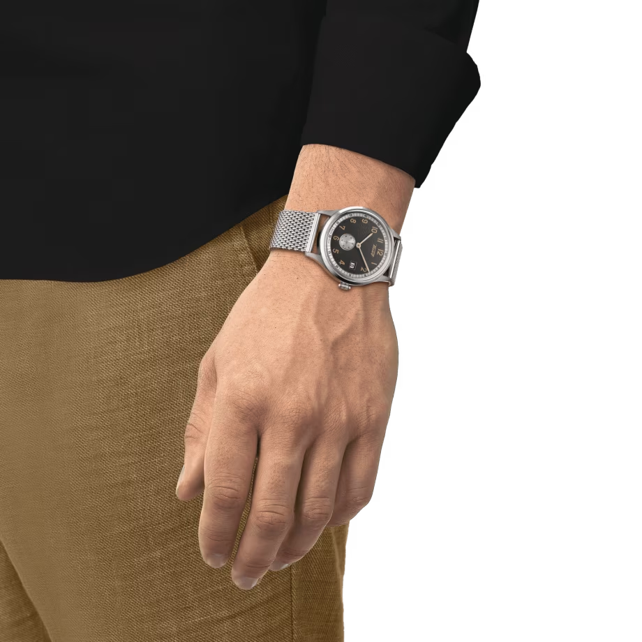 Часы Tissot Heritage Small Second 1938 T142.428.11.082.00. Швейцарский автоматический калибр 11 1/2''' с высокой точностью. Запас хода до 42 часов. Драгоценных камней в механизме 27. Корпус выполнен из нержавеющей стали. Раскладная застёжкаРаскладная застёжкаТакой тип застёжки используется только на браслетах из металла. Она никогда не раскрывается полностью, происходит разделение на 2 и более частей. Раскладывающая застёжка снизит вероятность потери часов к минимуму. Часовые метки в виде арабских цифр на сером циферблате. Сапфировое стеклоСапфировое стеклоПрочный и надёжный материал из кристалла сапфира синтетического происхождения, характеризующийся особой твёрдостью и устойчивостью к царапинам и повреждениям. с антибликовым покрытием. Вес модели 109 г. Размер между ушками 20 мм. Водозащита 50м.