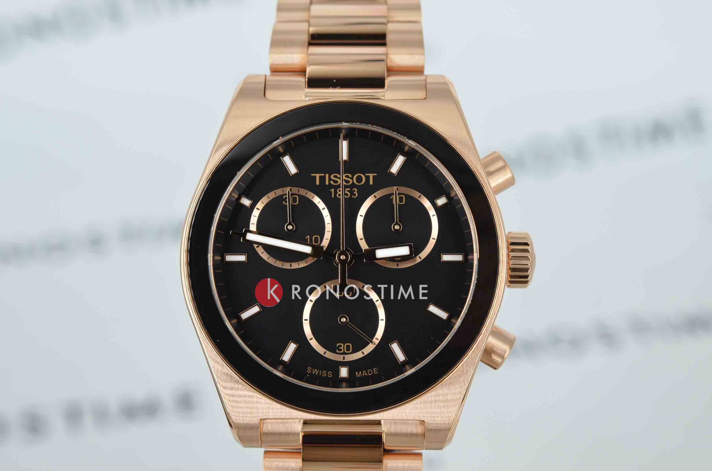 Tissot PR516 Quartz Chronograph T149.417.33.051.00 – элегантные мужские часы, вдохновлённые миром автоспорта 1960-х годов. Корпус диаметром 40 мм и толщиной 12,16 мм выполнен из нержавеющей стали 316L с PVD-покрытиемPVDУльтратонкое покрытие наносится в технике вакуумного напыления, сочетает в себе нитрид титана особой прочности со слоем золота или оксида хрома. Несёт в себе декоративную или защитную функцию. розового золота, придающим модели стильный и современный вид. Чёрный циферблат защищён сапфировым стекломСапфировое стеклоПрочный и надёжный материал из кристалла сапфира синтетического происхождения, характеризующийся особой твёрдостью и устойчивостью к царапинам и повреждениям. с антибликовым покрытиемАнтибликовое покрытиеСлой оксида металла в 0,13-0,3 микрон, благодаря которому стекло часов не бликует и не отражает свет. Антибликовое покрытие уменьшает отражение света в 10 раз, обеспечивая отличную читаемость показателей циферблата., обеспечивающим устойчивость к царапинам и отличную читаемость. Задняя крышка корпуса украшена гравировкой, подчёркивающей уникальность дизайна. Часы оснащены швейцарским кварцевым механизмом с функцией хронографаХронографФункция позволяет измерять отрезки времени с особой точностью: часы, минуты, секунды. Верным признаком хронографа является наличие на циферблате 3 дополнительных окошек-счётчиков., обеспечивающим высокую точность хода. Функциональность модели включает 30-минутный и 1/10-секундный счётчики, центральную 60-секундную стрелку хронографа, а также функции ADD и сплит-хронографаСплит-хронографИспользуется для измерения продолжительности нескольких временных отрезков, начинающихся одновременно, а заканчивающихся в разное время.. Индексы и стрелки покрыты люминесцентным покрытиемЛюминесцентное покрытиеПозволяет считывать показания времени в темноте. Производители наносят на стрелки, часовые индексы, безель или поверхность циферблата светонакопительный состав, дающий холодное свечение. Super-LumiNova®, обеспечивающим отличную видимость в условиях низкой освещённости. Браслет из нержавеющей стали с PVD-покрытиемPVDУльтратонкое покрытие наносится в технике вакуумного напыления, сочетает в себе нитрид титана особой прочности со слоем золота или оксида хрома. Несёт в себе декоративную или защитную функцию. розового золота оснащён системой быстрой замены и раскладной застёжкойРаскладная застёжкаТакой тип застёжки используется только на браслетах из металла. Она никогда не раскрывается полностью, происходит разделение на 2 и более частей. Раскладывающая застёжка снизит вероятность потери часов к минимуму. с предохранителем и кнопками, обеспечивающей комфортное ношение и надёжную фиксацию на запястье. Водозащита до 100 метров (10 бар) позволяет использовать часы во время плавания и других водных видов спорта.