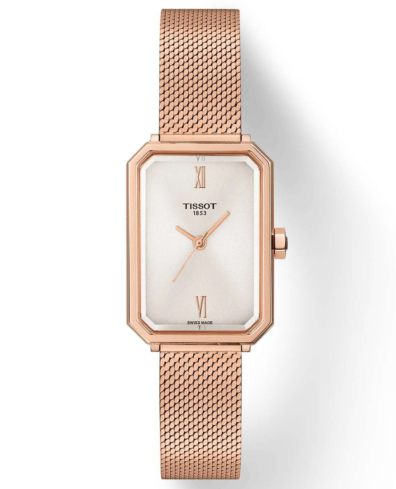Женские кварцевые часы Tissot из коллекции Classic Contemporary — это элегантный аксессуар, вдохновлённый стилем ар-деко 1920-х годов. Модель SRV сочетает геометрические формы и ретро-эстетику с современной технологией. Корпус прямоугольной формы размером 30×21,8 мм выполнен из нержавеющей стали 316L с PVD-покрытиемPVDУльтратонкое покрытие наносится в технике вакуумного напыления, сочетает в себе нитрид титана особой прочности со слоем золота или оксида хрома. Несёт в себе декоративную или защитную функцию. цвета розового золота. Циферблат серебристого цвета оформлен римскими цифрами на позициях 12 и 6 часов. Циферблат защищён сапфировым стекломСапфировое стеклоПрочный и надёжный материал из кристалла сапфира синтетического происхождения, характеризующийся особой твёрдостью и устойчивостью к царапинам и повреждениям. с фасетированной огранкой, повторяющей форму корпуса. Часы оснащены стальным браслетом миланского плетения с PVD-покрытиемPVDУльтратонкое покрытие наносится в технике вакуумного напыления, сочетает в себе нитрид титана особой прочности со слоем золота или оксида хрома. Несёт в себе декоративную или защитную функцию. цвета розового золота и ювелирной застёжкой. Благодаря системе быстрой замены ремешок можно легко поменять без использования инструментов. Водонепроницаемость 50 м позволяет использовать часы в повседневных условиях. Идеальный выбор для тех, кто ценит стиль, наследие и швейцарское качество.