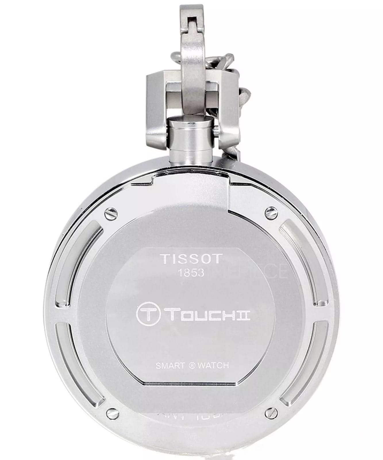 Tissot T-Pocket Touch T857.420.19.011.00 — это многофункциональные карманные часы. Модель состоит из серебристо-бежевой нержавеющей стали и белого циферблата, защищенного сапфировым стекломСапфировое стеклоПрочный и надёжный материал из кристалла сапфира синтетического происхождения, характеризующийся особой твёрдостью и устойчивостью к царапинам и повреждениям., на котором расположен дисплей. Через него можно использовать будильникБудильникБуди́льник — часы, в заданный момент времени подающие звуковой, световой и/или в редких случаях другой сигнал., GMTGMTОтображение времени второго часового пояса.Такая функция особенно актуальна для путешественников и бизнесменов,которые общаются с людьми из разных стран,теперь вы всегда будете знать,какой час у вашего партнёра или близкого человека., барометр, второй часовой поясВторой часовой поясФункция, позволяющая отображать время двух часовых поясов одновременно., термометр, высотомер, секундомерСекундомерСекундоме́р — прибор, способный измерять интервалы времени с точностью до долей секунды., хронографХронографФункция позволяет измерять отрезки времени с особой точностью: часы, минуты, секунды. Верным признаком хронографа является наличие на циферблате 3 дополнительных окошек-счётчиков., шагомерШагомерШагоме́р или педо́метр — измерительный прибор для подсчёта количества сделанных шагов (или пар шагов) при ходьбе или беге., вечный календарьВечный календарьКлассическое часовое усложнение, представляющее собой календарь, рассчитанный на несколько лет вперёд (стандартно – до 2099 года). Определяет текущую дату, день недели, месяц., мировое времяМировое время Полезное часовое усложнение, отображающее время в основных городах и известных областях по всему миру, оно связано с часовыми поясами, удобно для путешественников и бизнесменов. . БезельБезельВнешний ободок, закрепляющий стекло. В спортивных часах так называется поворотное кольцо с делениями на циферблате, выполняет роль таймера – замеряет отрезки времени на шкале. Неподвижный безель – элемент декора. Однонаправленно вращающийся безель на дайверских часах позволяет фиксировать моменты погружения и выныривания на поверхность. с PVD-покрытиемPVDУльтратонкое покрытие наносится в технике вакуумного напыления, сочетает в себе нитрид титана особой прочности со слоем золота или оксида хрома. Несёт в себе декоративную или защитную функцию.. Класс водозащиты: 100 метров, позволит плавать, нырять и заниматься другими водными видами спорта. Часы имеют EOLEOLПредставляет собой систему, уведомляющую владельца часов о необходимости замены элемента питания. За 2 недели до полного разряда батарейки секундная стрелка перестаёт ходить чётко и начинает перепрыгивать на 3-4 деления.. Стрелки и метки с люминесцентным покрытиемЛюминесцентное покрытиеПозволяет считывать показания времени в темноте. Производители наносят на стрелки, часовые индексы, безель или поверхность циферблата светонакопительный состав, дающий холодное свечение..