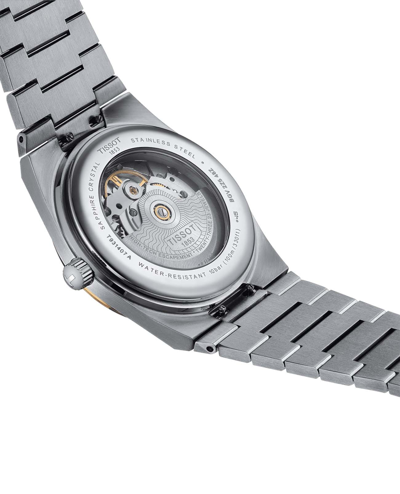 Мужские швейцарские часы Tissot PRX Powermatic 80 Steel & 18k Gold T931.407.41.031.01 с автоматическим механизмом Powermatic 80.111. Механические часы Tissot PRX Powermatic 80 используют энергию движения запястья для автоподзавода и имеют запас хода до 80 часов, продолжая показывать точное время, даже если владелец не носил часы 3 дня.