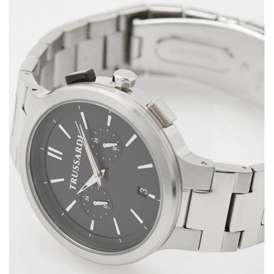 Итальянские мужские часы Trussardi Loud R2453164006 - это стильный мужской аксессуар, который сочетает элегантный дизайн и практичность. Корпус выполнен из нержавеющей стали, что обеспечивает долговечность и утончённый внешний вид. Надежное минеральное стеклоМинеральное стеклоМинеральное стекло представляет собой искусственно выращенный минерал кварца. Такое стекло отличается особой устойчивостью к повреждениям и царапинам. Уступает по некоторым качествам сапфировому стеклу. защищает циферблат от царапин и обеспечивает долговечность. Стрелки оснащены люминесцентным покрытиемЛюминесцентное покрытиеПозволяет считывать показания времени в темноте. Производители наносят на стрелки, часовые индексы, безель или поверхность циферблата светонакопительный состав, дающий холодное свечение., обеспечивающим отличную видимость даже при слабом освещении. Модель оснащена кварцевым механизмом, обеспечивающим высокую точность хода. Вынесенный циферблат с 24-х часовым указателем времени, второй часовой пояс в 24-х часовом формате. Окошко даты в положении 6 часов. Браслет из нержавеющей стали с раскладной застёжкойРаскладная застёжкаТакой тип застёжки используется только на браслетах из металла. Она никогда не раскрывается полностью, происходит разделение на 2 и более частей. Раскладывающая застёжка снизит вероятность потери часов к минимуму. обеспечивает комфортное ношение. Водозащита 50 метров позволит защитить корпус от случайных брызг или капель дождя. Эта модель – отличный выбор для тех, кто ищет сочетание стиля, качества и функциональности. Часы станут не только полезным аксессуаром, но и выразительным элементом вашего имиджа.