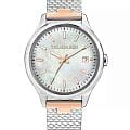 Итальянские женские часы Trussardi T-Vision R2453170505 - это стильный женский аксессуар, который сочетает элегантный дизайн и практичность. Корпус выполнен из нержавеющей стали, что обеспечивает долговечность и утончённый внешний вид. Надежное минеральное стеклоМинеральное стеклоМинеральное стекло представляет собой искусственно выращенный минерал кварца. Такое стекло отличается особой устойчивостью к повреждениям и царапинам. Уступает по некоторым качествам сапфировому стеклу. защищает циферблат от царапин и обеспечивает долговечность. Модель оснащена кварцевым механизмом, обеспечивающим высокую точность хода. Окошко даты в положении 3 часов. Браслет из нержавеющей стали с частичным IP-покрытиемIP-покрытиеМетод ионного напыления. Демонстрирует повышенную устойчивость к истиранию, окислению и химическим веществам. Под воздействием высокого давления и температуры около 1500°C молекулы металла надёжно соединяются с частицами корпуса часов. с раскладным замкомРаскладной замокДанный вариант застежки используется только на часах с металлическим браслетом. Отличительная особенность такого крепления в том, что длина браслета становится универсальной и вы можете самостоятельно отрегулировать нужный вам размер – застежка просто двигается по браслету часов. обеспечивает комфортное ношение. Стрелки и метки оснащены люминесцентным покрытиемЛюминесцентное покрытиеПозволяет считывать показания времени в темноте. Производители наносят на стрелки, часовые индексы, безель или поверхность циферблата светонакопительный состав, дающий холодное свечение., обеспечивающим отличную видимость даже при слабом освещении. Водозащита 50 метров позволит защитить корпус от случайных брызг или капель дождя. Эта модель – отличный выбор для тех, кто ищет сочетание стиля, качества и функциональности. Часы станут не только полезным аксессуаром, но и выразительным элементом вашего имиджа.