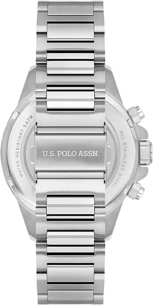 Мужские элегантные американские часы U.S. Polo Assn. Crossing USPA1084-04 обладают кварцевым механизмом с высокой точностью. Минеральное стеклоМинеральное стеклоМинеральное стекло представляет собой искусственно выращенный минерал кварца. Такое стекло отличается особой устойчивостью к повреждениям и царапинам. Уступает по некоторым качествам сапфировому стеклу. устойчивое к появлению царапин, обладающее высокой прозрачностью. Изысканный корпус изготовлен из нержавеющей стали. Серебристые центральные часовая, минутная и секундная стрелки. 24-х часовой формат времени, день недели вынесены на отдельный циферблат. Часы оснащены люминесцентным покрытиемЛюминесцентное покрытиеПозволяет считывать показания времени в темноте. Производители наносят на стрелки, часовые индексы, безель или поверхность циферблата светонакопительный состав, дающий холодное свечение., обеспечивающим хорошую читаемость в темноте. Класс водозащиты: 50 метров, позволит защитить корпус от случайных брызг или капель дождя. Стальной браслет с раскладной застёжкойРаскладная застёжкаТакой тип застёжки используется только на браслетах из металла. Она никогда не раскрывается полностью, происходит разделение на 2 и более частей. Раскладывающая застёжка снизит вероятность потери часов к минимуму. обеспечивает комфорт и удобство в использовании, добавляя завершающий штрих к этому стильному и высокоэффективному аксессуару. Окошко даты находится в положении между 4 и 5 часами. Это практичный и стильный инструмент для активной повседневности, объединяющий точный механизм и удобство.