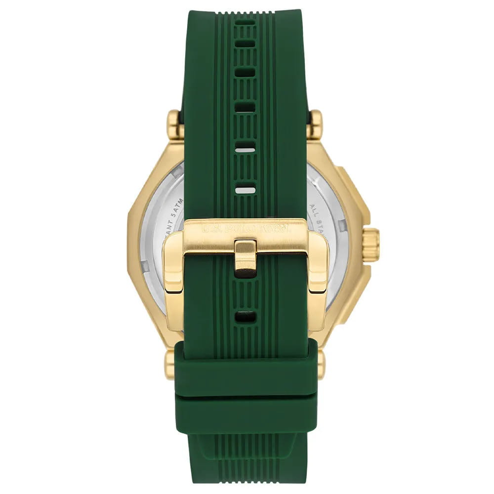 Мужские американские стильные часы U.S. Polo Assn. Fundamental USPA1107-06 с кварцевым механизмом с высокой точностью. Минеральное стеклоМинеральное стеклоМинеральное стекло представляет собой искусственно выращенный минерал кварца. Такое стекло отличается особой устойчивостью к повреждениям и царапинам. Уступает по некоторым качествам сапфировому стеклу. устойчивое к появлению царапин, обладающее высокой прозрачностью. Изысканный корпус изготовлен из нержавеющей стали с IP-покрытиемIP-покрытиеМетод ионного напыления. Демонстрирует повышенную устойчивость к истиранию, окислению и химическим веществам. Под воздействием высокого давления и температуры около 1500°C молекулы металла надёжно соединяются с частицами корпуса часов.. Золотистые центральные часовая, минутная и секундная стрелки. Окошко даты находится в положении 3 часов. Класс водозащиты: 50 метров, позволит защитить корпус от случайных брызг или капель дождя. Часы оснащены люминесцентным покрытиемЛюминесцентное покрытиеПозволяет считывать показания времени в темноте. Производители наносят на стрелки, часовые индексы, безель или поверхность циферблата светонакопительный состав, дающий холодное свечение., обеспечивающим хорошую читаемость в темноте. Силиконовый ремень со стандартной застежкой обеспечивает комфорт и удобство в использовании, добавляя завершающий штрих к этому стильному и высокоэффективному аксессуару. Модель подчёркивает индивидуальность владельца и идеально подходит как для повседневного, так и для делового образа.