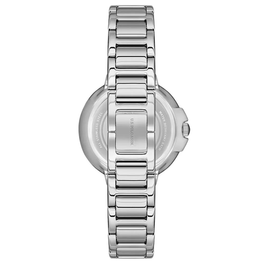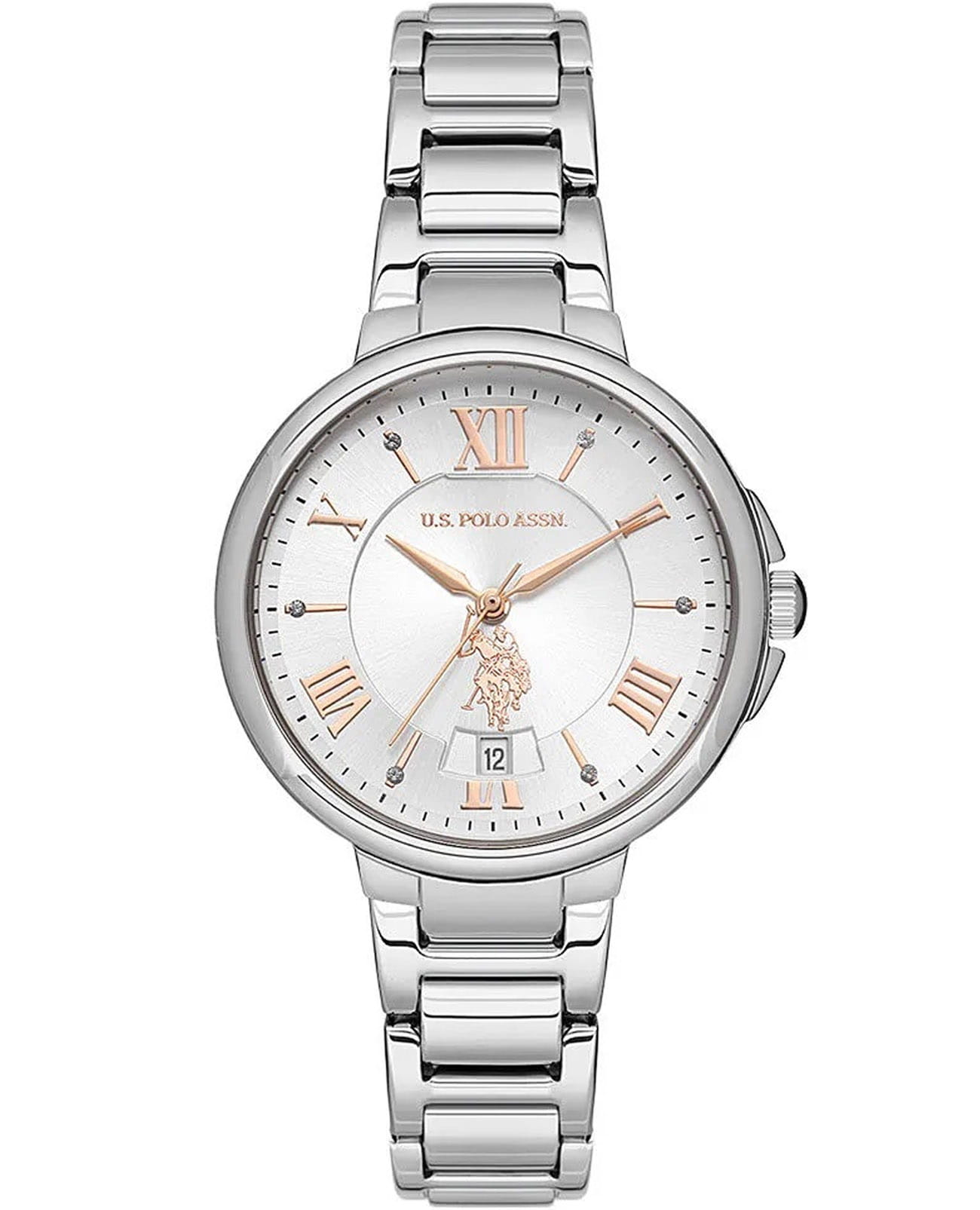 Женские элегантные часы U.S. Polo Assn. Stile USPA2012-07 кварцевый механизм с высокой точностью. Минеральное стеклоМинеральное стеклоМинеральное стекло представляет собой искусственно выращенный минерал кварца. Такое стекло отличается особой устойчивостью к повреждениям и царапинам. Уступает по некоторым качествам сапфировому стеклу. устойчивое к появлению царапин, обладающее высокой прозрачностью. Изысканный корпус изготовлен из нержавеющей стали. Лаконичные центральные часовая, минутная и секундная стрелки. Класс водозащиты: 50 метров, позволит защитить корпус от случайных брызг или капель дождя. Стальной браслет с ювелирной застежкой обеспечивает комфорт и удобство в использовании, добавляя завершающий штрих к этому стильному аксессуару. Окошко даты находится в положении 6 часов. Циферблат с кристаллами подчёркивает изысканный характер часов, создавая универсальный образ, подходящий как для повседневных ситуаций, так и для особых случаев.