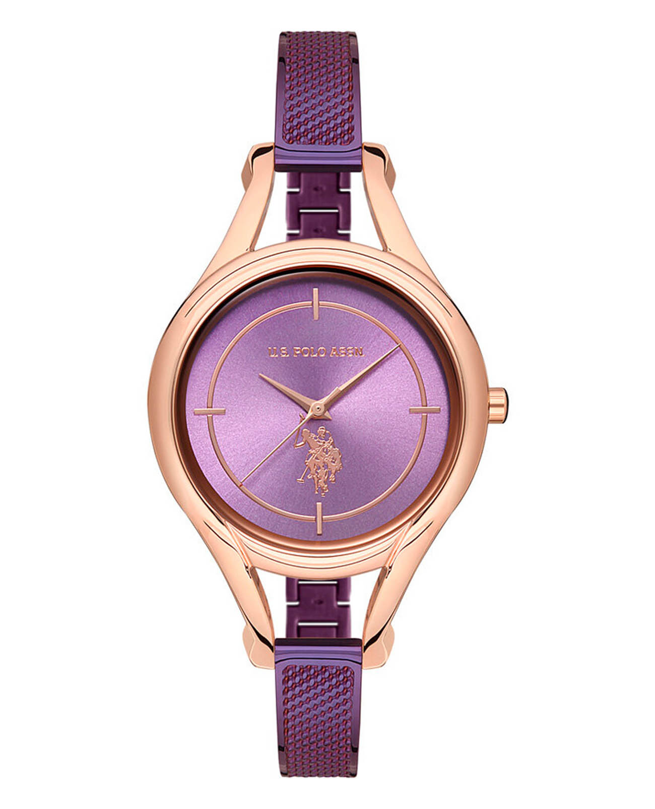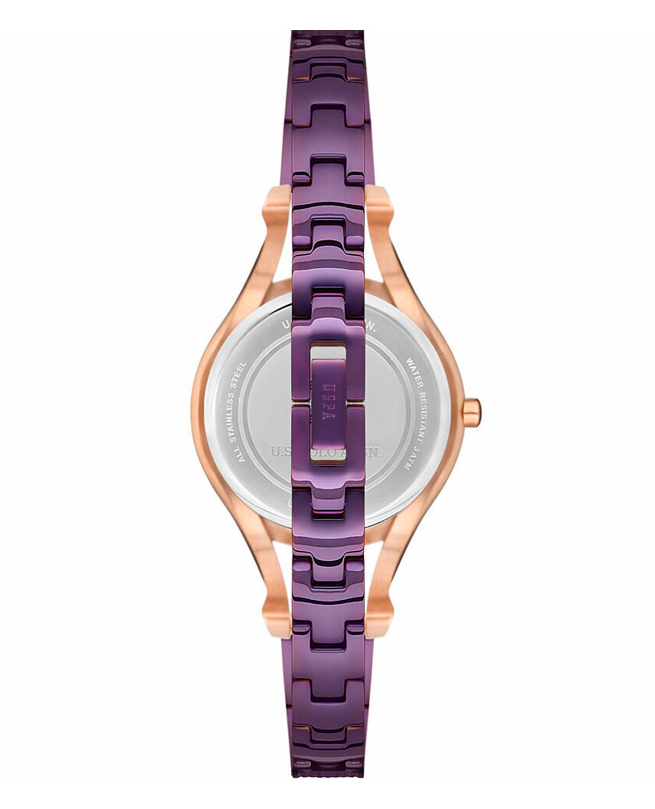Женские часы U.S. Polo Assn. Stile USPA2026-05, кварцевый механизм с высокой точностью. Минеральное стеклоМинеральное стеклоМинеральное стекло представляет собой искусственно выращенный минерал кварца. Такое стекло отличается особой устойчивостью к повреждениям и царапинам. Уступает по некоторым качествам сапфировому стеклу. устойчивое к появлению царапин, обладающее высокой прозрачностью. Центральные часовая, минутная и секундная стрелки. Корпус и браслет изготовлены из нержавеющей стали с IP-покрытиемIP-покрытиеМетод ионного напыления. Демонстрирует повышенную устойчивость к истиранию, окислению и химическим веществам. Под воздействием высокого давления и температуры около 1500°C молекулы металла надёжно соединяются с частицами корпуса часов.. БезельБезельВнешний ободок, закрепляющий стекло. В спортивных часах так называется поворотное кольцо с делениями на циферблате, выполняет роль таймера – замеряет отрезки времени на шкале. Неподвижный безель – элемент декора. Однонаправленно вращающийся безель на дайверских часах позволяет фиксировать моменты погружения и выныривания на поверхность. с IP-покрытиемIP-покрытиеМетод ионного напыления. Демонстрирует повышенную устойчивость к истиранию, окислению и химическим веществам. Под воздействием высокого давления и температуры около 1500°C молекулы металла надёжно соединяются с частицами корпуса часов.. Класс водозащиты: 30 метров, позволит защитить корпус от случайных брызг или капель дождя. Стальной браслет на ювелирной застёжке.