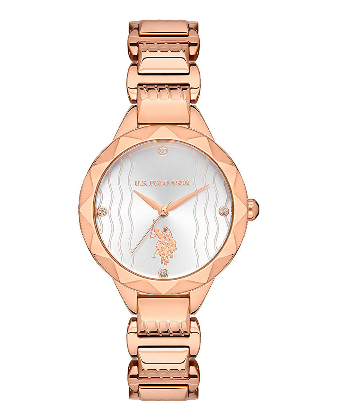 Женские часы U.S. Polo Assn Stile USPA2046-02, кварцевый механизм с высокой точностью. Минеральное стеклоМинеральное стеклоМинеральное стекло представляет собой искусственно выращенный минерал кварца. Такое стекло отличается особой устойчивостью к повреждениям и царапинам. Уступает по некоторым качествам сапфировому стеклу. устойчивое к появлению царапин, обладающее высокой прозрачностью. Корпус изготовлен из нержавеющей стали с IP-покрытиемIP-покрытиеМетод ионного напыления. Демонстрирует повышенную устойчивость к истиранию, окислению и химическим веществам. Под воздействием высокого давления и температуры около 1500°C молекулы металла надёжно соединяются с частицами корпуса часов.. Циферблат украшен кристаллами. Класс водозащиты: 50 метров, позволит защитить корпус от случайных брызг или капель дождя. Стальной браслет с IP-покрытиемIP-покрытиеМетод ионного напыления. Демонстрирует повышенную устойчивость к истиранию, окислению и химическим веществам. Под воздействием высокого давления и температуры около 1500°C молекулы металла надёжно соединяются с частицами корпуса часов. на ювелирной застёжке.