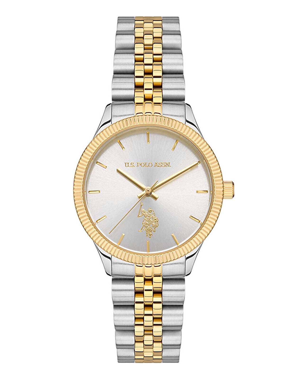 Женские часы U.S. Polo Assn Stile USPA2061-02, кварцевый механизм с высокой точностью. Минеральное стеклоМинеральное стеклоМинеральное стекло представляет собой искусственно выращенный минерал кварца. Такое стекло отличается особой устойчивостью к повреждениям и царапинам. Уступает по некоторым качествам сапфировому стеклу. устойчивое к появлению царапин, обладающее высокой прозрачностью. Корпус изготовлен из нержавеющей стали. БезельБезельВнешний ободок, закрепляющий стекло. В спортивных часах так называется поворотное кольцо с делениями на циферблате, выполняет роль таймера – замеряет отрезки времени на шкале. Неподвижный безель – элемент декора. Однонаправленно вращающийся безель на дайверских часах позволяет фиксировать моменты погружения и выныривания на поверхность. с IP-покрытиемIP-покрытиеМетод ионного напыления. Демонстрирует повышенную устойчивость к истиранию, окислению и химическим веществам. Под воздействием высокого давления и температуры около 1500°C молекулы металла надёжно соединяются с частицами корпуса часов.. Класс водозащиты: 50 метров, позволит защитить корпус от случайных брызг или капель дождя. Стальной браслет с частичным IP-покрытиемIP-покрытиеМетод ионного напыления. Демонстрирует повышенную устойчивость к истиранию, окислению и химическим веществам. Под воздействием высокого давления и температуры около 1500°C молекулы металла надёжно соединяются с частицами корпуса часов. на раскладной застёжкеРаскладная застёжкаТакой тип застёжки используется только на браслетах из металла. Она никогда не раскрывается полностью, происходит разделение на 2 и более частей. Раскладывающая застёжка снизит вероятность потери часов к минимуму..
