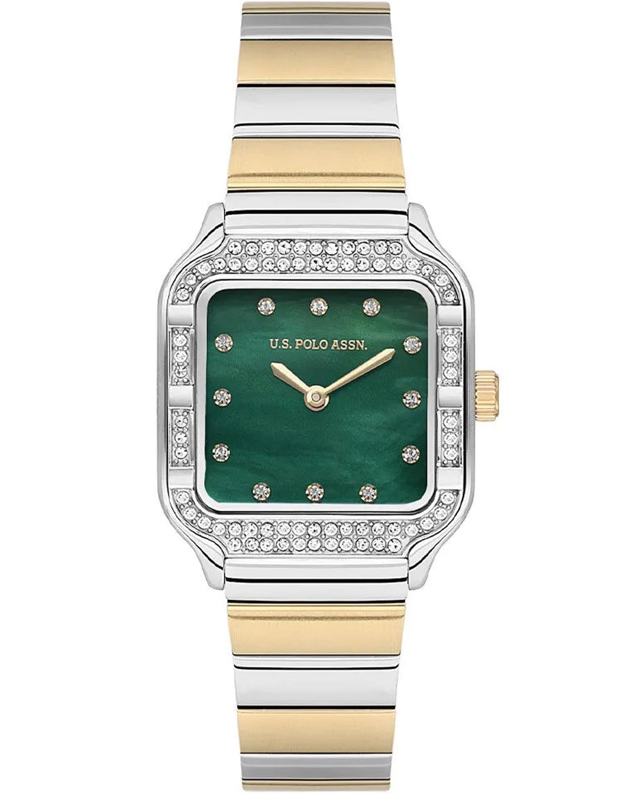 Женские элегантные часы U.S. Polo Assn. Stile USPA2100-04, кварцевый механизм с высокой точностью. Минеральное стеклоМинеральное стеклоМинеральное стекло представляет собой искусственно выращенный минерал кварца. Такое стекло отличается особой устойчивостью к повреждениям и царапинам. Уступает по некоторым качествам сапфировому стеклу. устойчивое к появлению царапин, обладающее высокой прозрачностью. Изысканный корпус изготовлен из нержавеющей стали с безелемБезельВнешний ободок, закрепляющий стекло. В спортивных часах так называется поворотное кольцо с делениями на циферблате, выполняет роль таймера – замеряет отрезки времени на шкале. Неподвижный безель – элемент декора. Однонаправленно вращающийся безель на дайверских часах позволяет фиксировать моменты погружения и выныривания на поверхность. с кристаллами. Лаконичные центральные часовая, минутная стрелки. Водонепроницаемость 5 АТМ позволяет использовать часы в повседневных условиях — при мытье рук или под лёгким дождём. Браслет выполнен из стали с IP-покрытиемIP-покрытиеМетод ионного напыления. Демонстрирует повышенную устойчивость к истиранию, окислению и химическим веществам. Под воздействием высокого давления и температуры около 1500°C молекулы металла надёжно соединяются с частицами корпуса часов. и оснащён раскладной застёжкойРаскладная застёжкаТакой тип застёжки используется только на браслетах из металла. Она никогда не раскрывается полностью, происходит разделение на 2 и более частей. Раскладывающая застёжка снизит вероятность потери часов к минимуму., обеспечивающей комфорт и уверенную фиксацию на запястье, а также добавляя завершающий штрих к этому стильному аксессуару. Циферблат с кристаллами подчёркивает изысканный характер часов, создавая универсальный образ, подходящий как для повседневных ситуаций, так и для особых случаев.
