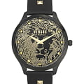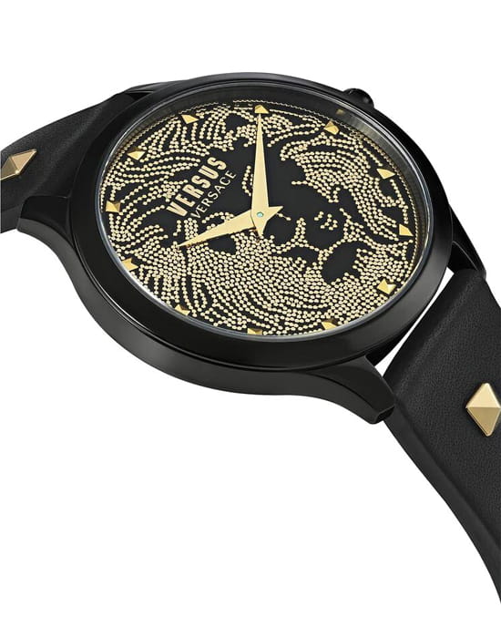 На запястье эти массивные дизайнерские часы смотрятся эффектно, стильно и завораживающе. Они надолго приковывают внимание окружающих. Дизайнерские часы Domus с круглым черным корпусом. Циферблат украшен изящным изображением головы льва. Рифленая заводная головка. Кожаный ремешок декорирован металлическими заклепками.