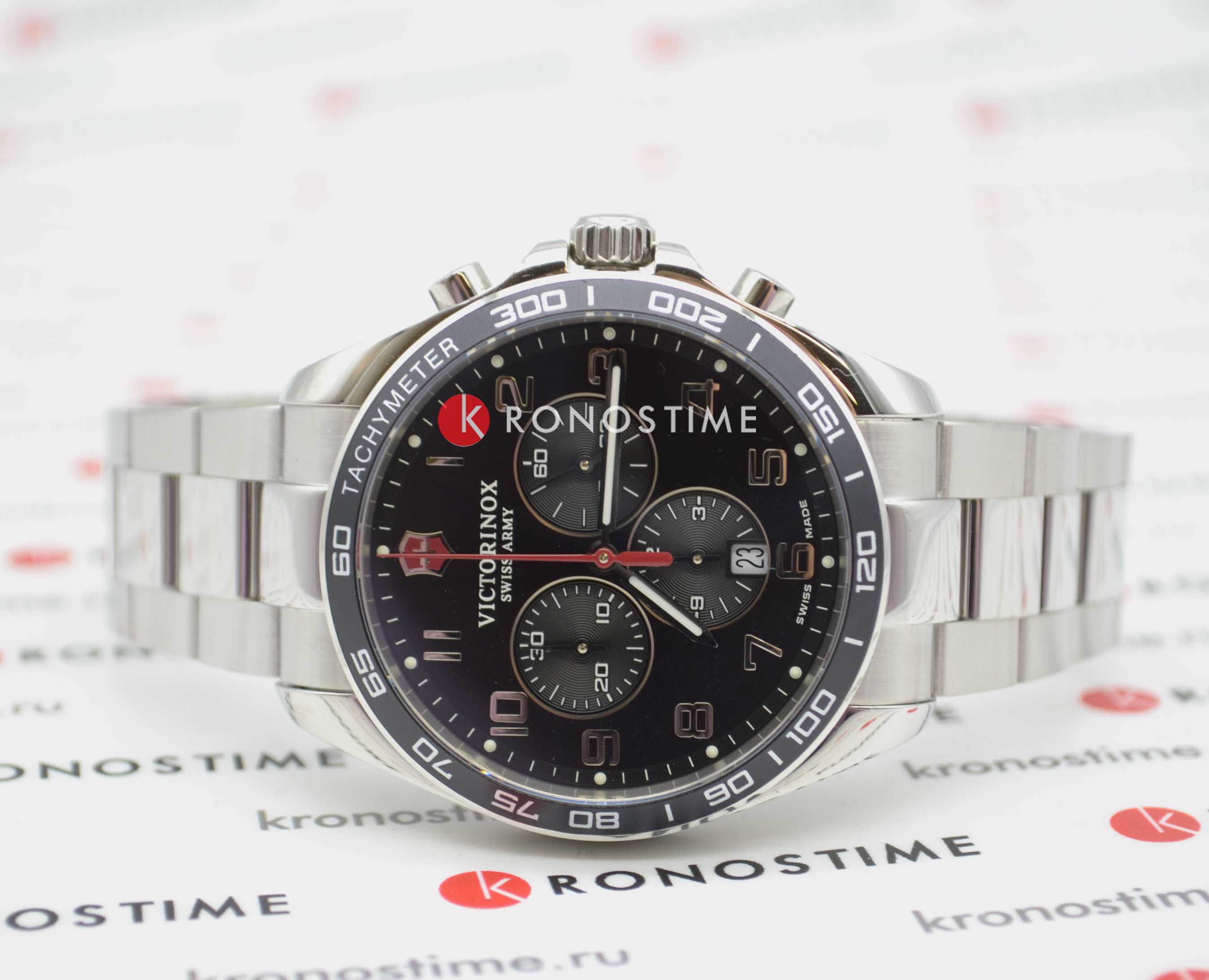 Мужские швейцарские часы-хронографХронографФункция позволяет измерять отрезки времени с особой точностью: часы, минуты, секунды. Верным признаком хронографа является наличие на циферблате 3 дополнительных окошек-счётчиков. Victorinox Fieldforce Chronograph 241899 с надёжным кварцевым механизмом. Сапфировое стеклоСапфировое стеклоПрочный и надёжный материал из кристалла сапфира синтетического происхождения, характеризующийся особой твёрдостью и устойчивостью к царапинам и повреждениям. с трёхслойным антибликовым покрытием. Корпус часов выполнен из нержавеющей стали 316L. Стальной браслет на раскладной застёжкеРаскладная застёжкаТакой тип застёжки используется только на браслетах из металла. Она никогда не раскрывается полностью, происходит разделение на 2 и более частей. Раскладывающая застёжка снизит вероятность потери часов к минимуму.. Влагозащита: 100 метров, позволит плавать, нырять и заниматься другими водными видами спорта. Окошко даты находится в положении 6 часов, стрелки и метки с люминесцентным покрытиемЛюминесцентное покрытиеПозволяет считывать показания времени в темноте. Производители наносят на стрелки, часовые индексы, безель или поверхность циферблата светонакопительный состав, дающий холодное свечение., тахиметрТахиметрРазмеченная шкала, располагается на ободке или безеле часов. Тахиметр позволяет рассчитать скорость на определённом участке пути, расстояние измеряется в километрах или милях..