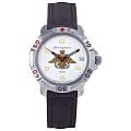 Российские механические часы. Корпус из высокопрочной стали с антикоррозийными свойствами. Ремешок из натуральной кожи черного цвета. Циферблат с символикой ВМФ. Водонепроницаемость часов составляет 3 ATM. Минеральное стекло, устойчивое к появлению царапин.