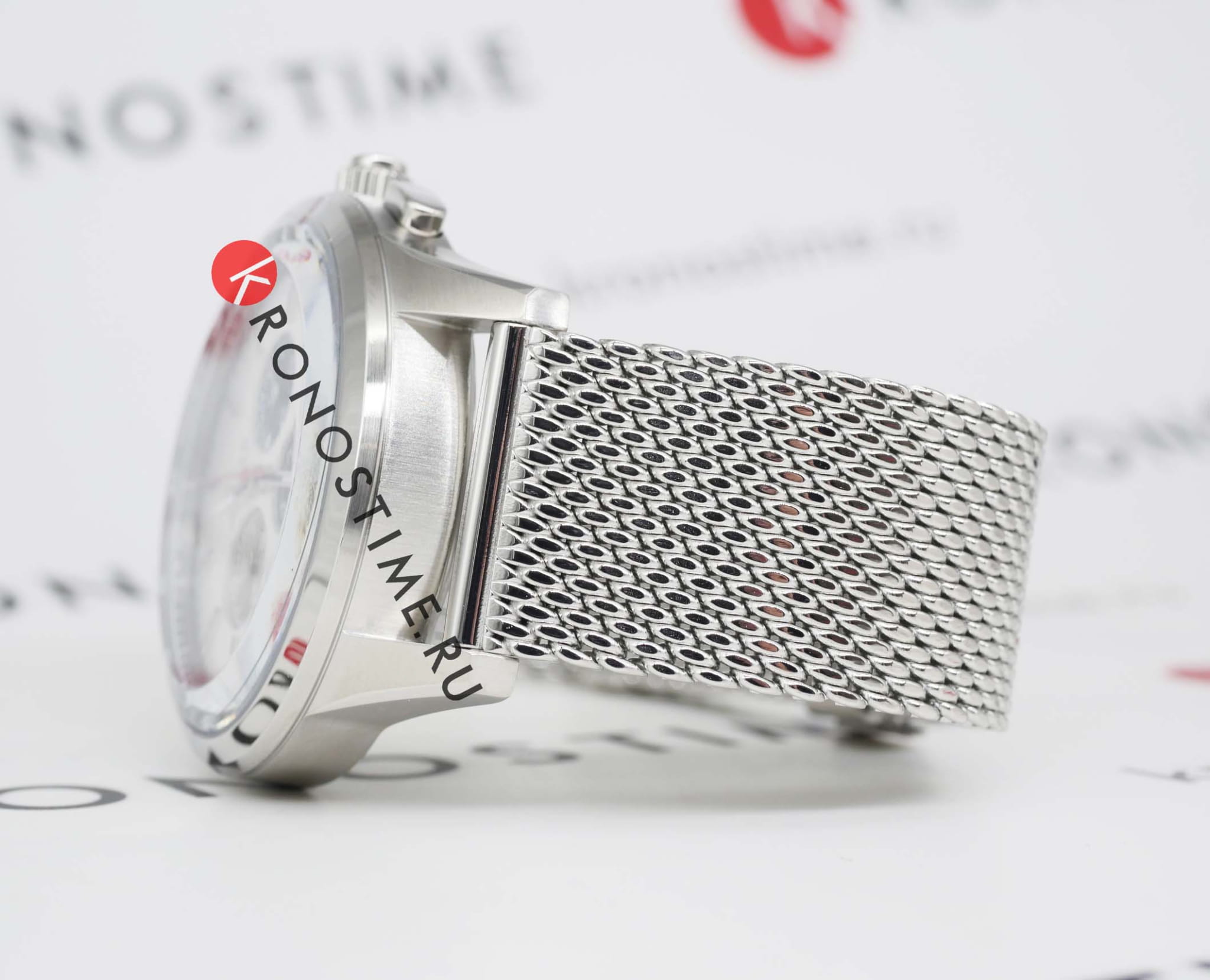 Браслет выполнен в миланском плетении из нержавеющей стали 316L на раскладном замкеРаскладной замокДанный вариант застежки используется только на часах с металлическим браслетом. Отличительная особенность такого крепления в том, что длина браслета становится универсальной и вы можете самостоятельно отрегулировать нужный вам размер – застежка просто двигается по браслету часов.. Ширина браслета составляет 22 мм. Браслет добавляет часам элегантности и удобства в любых условиях.