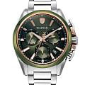Швейцарские мужские кварцевые часы-хронограф Wainer WA.16100-A с механизмом калибра Ronda 5030.D станут идеальным выбором для ценителей стильных и практичных аксессуаров. Корпус из нержавеющей стали 316L с частичным PVD-покрытиемPVDУльтратонкое покрытие наносится в технике вакуумного напыления, сочетает в себе нитрид титана особой прочности со слоем золота или оксида хрома. Несёт в себе декоративную или защитную функцию. диаметром 44 мм и толщиной 11 мм защищен прочным сапфировым стекломСапфировое стеклоПрочный и надёжный материал из кристалла сапфира синтетического происхождения, характеризующийся особой твёрдостью и устойчивостью к царапинам и повреждениям., устойчивым к царапинам и механическим повреждениям. Зеленый циферблат с метками в виде штрихов оснащен окошком даты между 4 и 5 часами, а указатель дня недели вынесен на отдельный циферблат. Рифленая заводная головка с защитой обеспечивает дополнительную надежность механизма. Модель имеет класс водозащиты 100 метров, позволит плавать, нырять и заниматься другими водными видами спорта. Часы комплектуются стальным браслетом из нержавеющей стали 316L на раскладной застёжкеРаскладная застёжкаТакой тип застёжки используется только на браслетах из металла. Она никогда не раскрывается полностью, происходит разделение на 2 и более частей. Раскладывающая застёжка снизит вероятность потери часов к минимуму.. Функциональные возможности включают хронограф, секундомер и вынесенную секундную стрелку. Модель станет превосходным выбором для мужчин, ценящих надежность швейцарского качества и современный дизайн.
