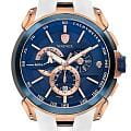 Мужские кварцевые часы-хронографХронографФункция позволяет измерять отрезки времени с особой точностью: часы, минуты, секунды. Верным признаком хронографа является наличие на циферблате 3 дополнительных окошек-счётчиков. с секундомеромСекундомерСекундоме́р — прибор, способный измерять интервалы времени с точностью до долей секунды. Wainer WA.16910-H сочетает элегантный дизайн и высокое качество исполнения. Корпус выполнен из нержавеющей стали с PVD-покрытиемPVDУльтратонкое покрытие наносится в технике вакуумного напыления, сочетает в себе нитрид титана особой прочности со слоем золота или оксида хрома. Несёт в себе декоративную или защитную функцию. цвета розового золота, диаметром 47 мм и толщиной 13 мм, обеспечивает прочность и долговечность. Циферблат с метками в виде штрихов выполнен по технологии Sunray (солнечные лучи) и украшен фирменным логотипом Wainer и дополнен тахиметромТахиметрРазмеченная шкала, располагается на ободке или безеле часов. Тахиметр позволяет рассчитать скорость на определённом участке пути, расстояние измеряется в километрах или милях.. Сапфировое стеклоСапфировое стеклоПрочный и надёжный материал из кристалла сапфира синтетического происхождения, характеризующийся особой твёрдостью и устойчивостью к царапинам и повреждениям. защищает дисплей от царапин и механических повреждений. Окошко даты находится в положении 6 часов. Стрелки с люминесцентным покрытиемЛюминесцентное покрытиеПозволяет считывать показания времени в темноте. Производители наносят на стрелки, часовые индексы, безель или поверхность циферблата светонакопительный состав, дающий холодное свечение., улучшая читаемость в условиях недостаточного освещения. БезельБезельВнешний ободок, закрепляющий стекло. В спортивных часах так называется поворотное кольцо с делениями на циферблате, выполняет роль таймера – замеряет отрезки времени на шкале. Неподвижный безель – элемент декора. Однонаправленно вращающийся безель на дайверских часах позволяет фиксировать моменты погружения и выныривания на поверхность. с PVD-покрытиемPVDУльтратонкое покрытие наносится в технике вакуумного напыления, сочетает в себе нитрид титана особой прочности со слоем золота или оксида хрома. Несёт в себе декоративную или защитную функцию. синего цвета. Силиконовый ремешок на стандартной застёжке обеспечивает комфортное ношение. Водонепроницаемость до 100 метров делает модель подходящей для плавания и активного образа жизни. Wainer — это стильный и надежный аксессуар для тех, кто ценит швейцарское качество и современные технологии.