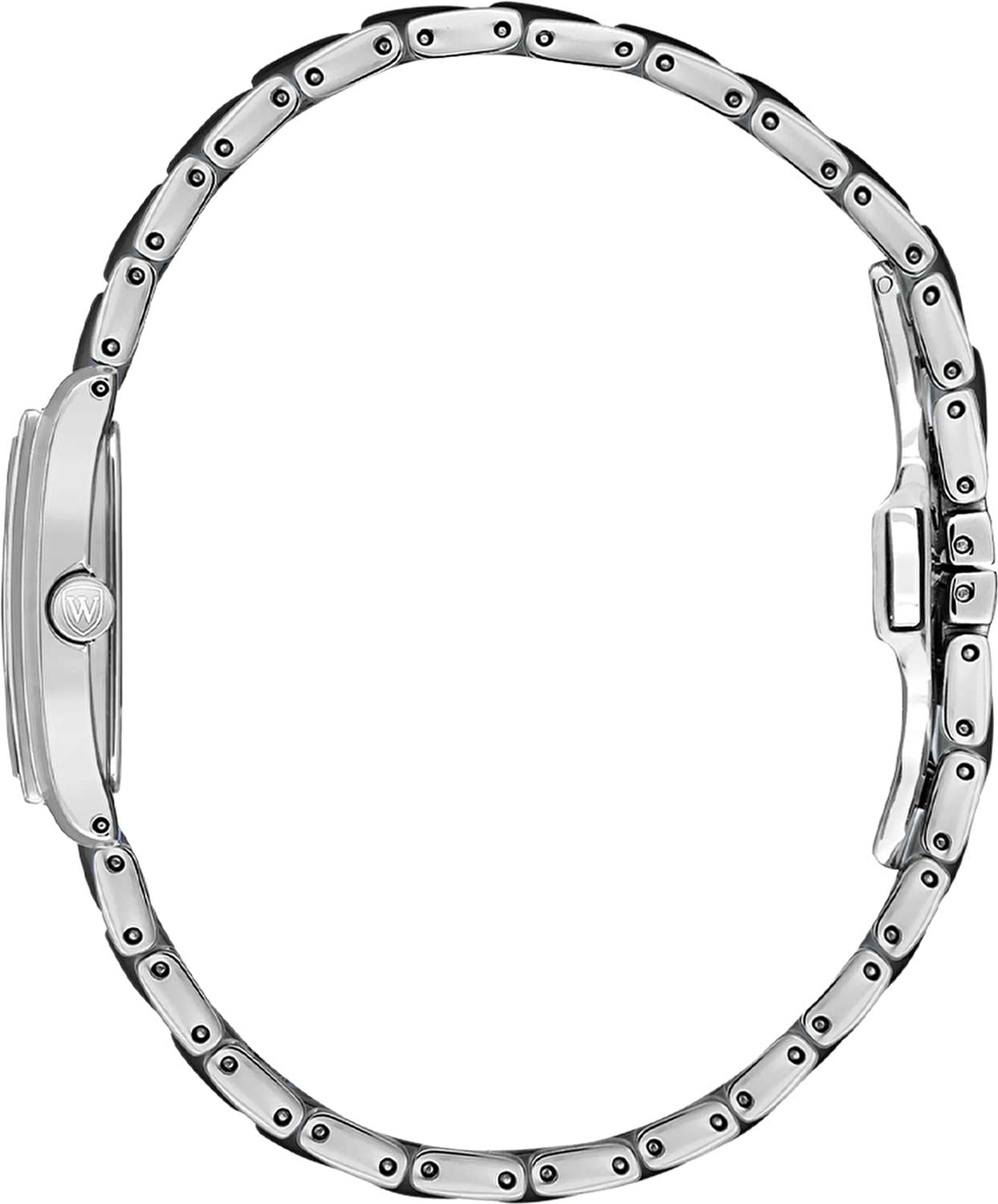 Швейцарские женские кварцевые часы Wainer WA.18060-C станут элегантным дополнением любого образа. Прямоугольный корпус из нержавеющей стали 316L размером 22х24.5 мм и толщиной 8 мм защищен прочным сапфировым стекломСапфировое стеклоПрочный и надёжный материал из кристалла сапфира синтетического происхождения, характеризующийся особой твёрдостью и устойчивостью к царапинам и повреждениям.. Циферблат с метками в виде штрихов украшен кристаллом в положении 12 часов, а заводная головка с фирменным логотипом добавляет модели особый шарм. Часы имеют класс водозащиты 30 метров, позволит защитить корпус от случайных брызг или капель дождя. Модель комплектуется стальным браслетом из нержавеющей стали 316L с керамическими вставками на раскладной застёжкеРаскладная застёжкаТакой тип застёжки используется только на браслетах из металла. Она никогда не раскрывается полностью, происходит разделение на 2 и более частей. Раскладывающая застёжка снизит вероятность потери часов к минимуму., длина браслета составляет 180 мм. Вес часов 88 грамм обеспечивает комфортное ношение в течение дня. Элегантный дизайн и надежное качество швейцарского производства делают эти часы превосходным выбором для современной женщины.