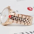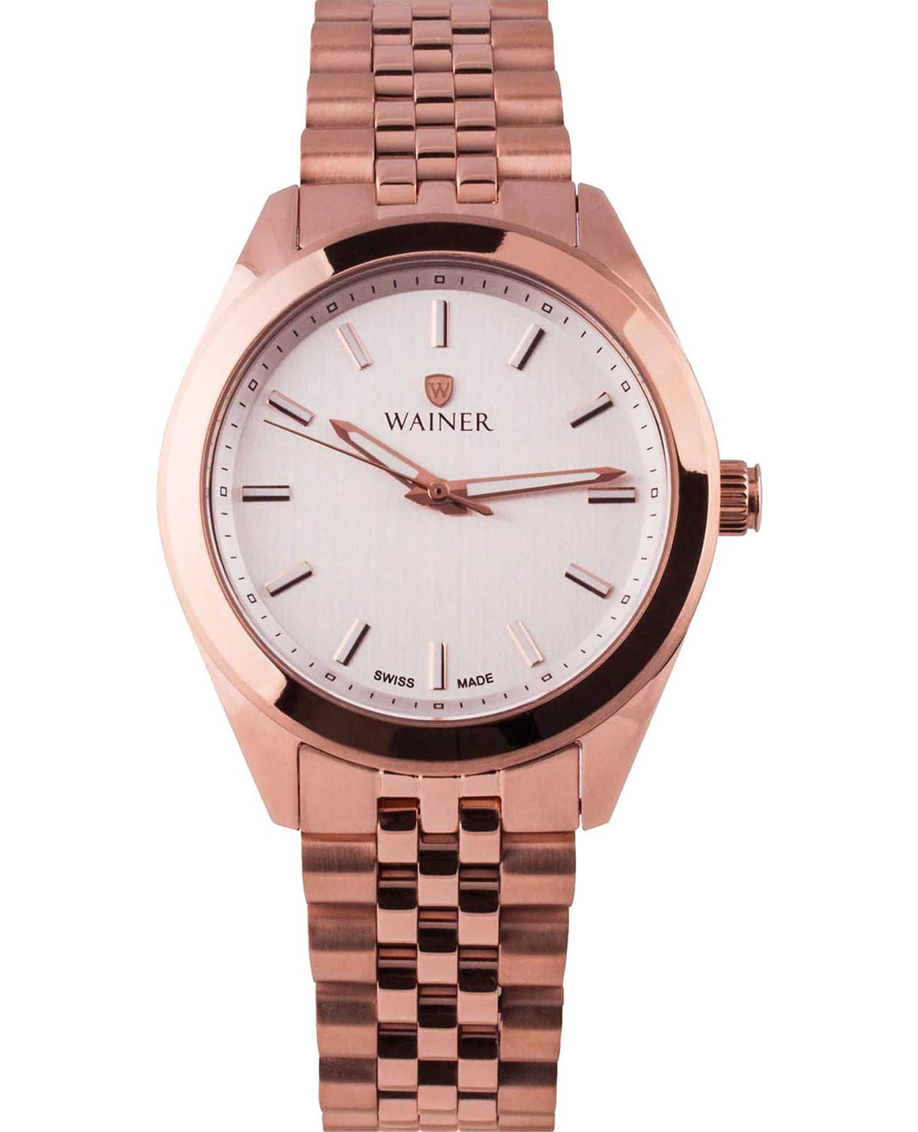Wainer WA.18542-C – элегантные женские швейцарские часы, сочетающие современный дизайн с высококачественными материалами. Корпус и браслет выполнены из нержавеющей стали 316L с PVDPVDУльтратонкое покрытие наносится в технике вакуумного напыления, сочетает в себе нитрид титана особой прочности со слоем золота или оксида хрома. Несёт в себе декоративную или защитную функцию.-покрытием, придающим глубокий оттенок и повышенную стойкость к износу. Сапфировое стеклоСапфировое стеклоПрочный и надёжный материал из кристалла сапфира синтетического происхождения, характеризующийся особой твёрдостью и устойчивостью к царапинам и повреждениям. обеспечивает защиту от царапин и кристальную прозрачность, сохраняя изысканный вид циферблата. Водонепроницаемость 50 метров делает модель подходящей для повседневного ношения и лёгких водных активностей.