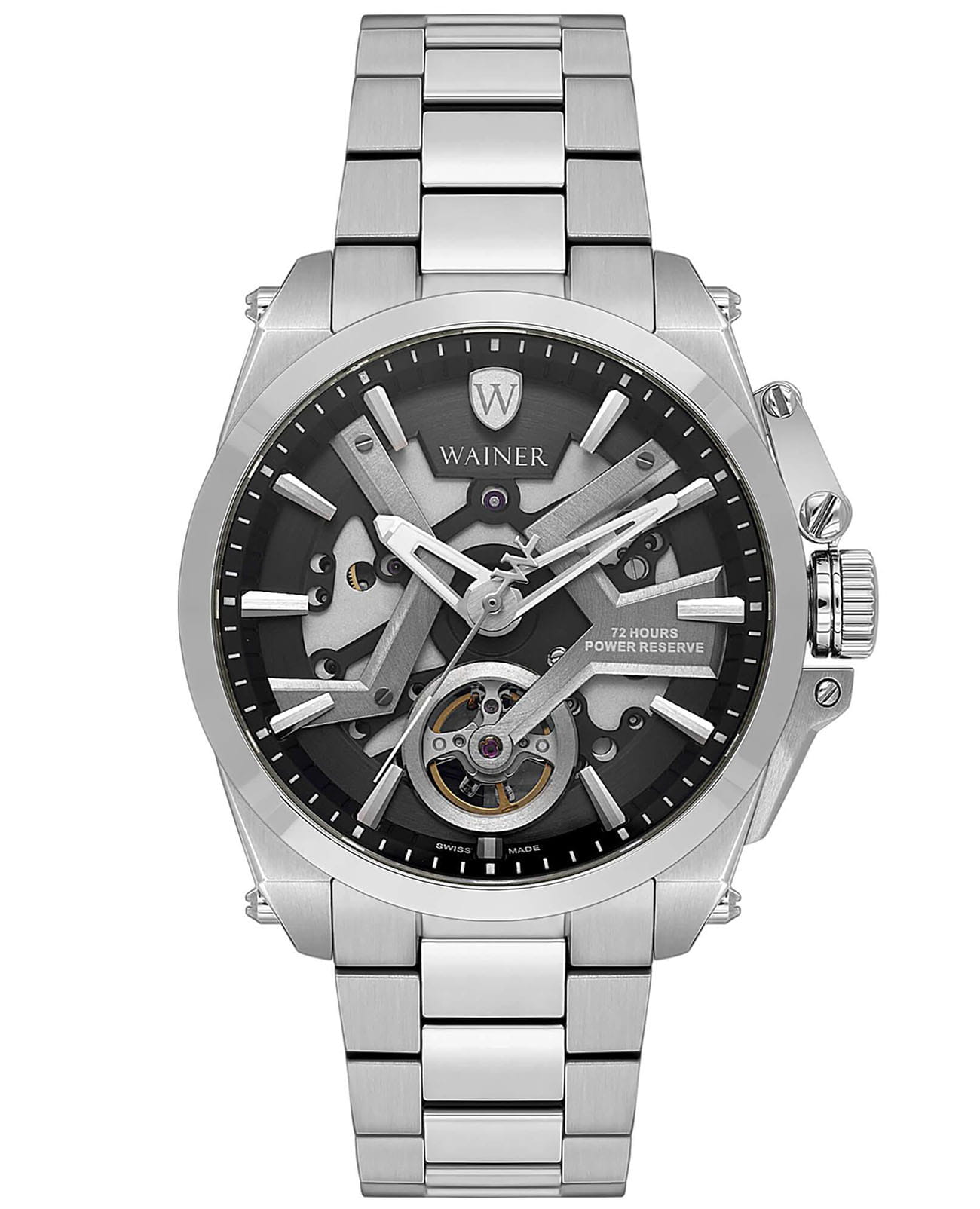 Мужские механические часы Wainer WA.25250-C — это стильный аксессуар, сочетающий в себе швейцарское качество и функциональность. Корпус выполнен из нержавеющей стали 316L диаметром 43 мм и толщиной 14 мм, что делает его прочным и устойчивым к царапинам. Циферблат скелетонизированный, а его поверхность защищена сапфировым стекломСапфировое стеклоПрочный и надёжный материал из кристалла сапфира синтетического происхождения, характеризующийся особой твёрдостью и устойчивостью к царапинам и повреждениям., устойчивым к повреждениям. Прозрачная задняя крышка позволяет наблюдать за работой механизма, подчёркивая внимание к деталям. Браслет из стали 316L шириной 22-20 мм оснащён застёжкой «бабочка» с кнопкамиЗастёжка "бабочка"Такой вид застёжки дополняется предохранителями, помогающими избежать случайного раскрытия браслета. Обладают изящным исполнением. , обеспечивающей комфорт и надёжную фиксацию на запястье. Часы водонепроницаемы до 100 метров (, что позволяет использовать их при плавании и других водных активностях без глубокого погружения. Вес изделия составляет 179 г. Эти часы станут универсальным аксессуаром для тех, кто ценит сочетание стиля, функциональности и швейцарского мастерства — идеальный выбор для повседневной носки и активного образа жизни.