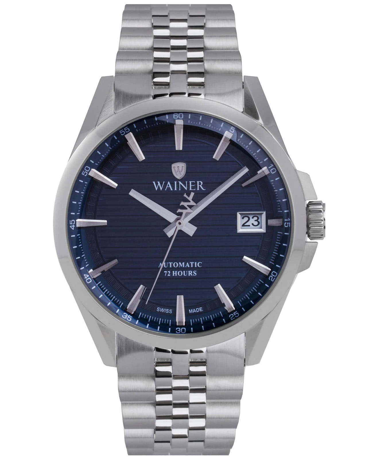 Мужские механические часы с автоподзаводом WA.25401-B сочетают в себе элегантный дизайн и высокое качество исполнения. Корпус выполнен из нержавеющей стали серебристого цвета диаметром 41 мм, обеспечивает прочность и долговечность. Циферблат с метками в виде штрихов украшен фирменным логотипом Wainer. Секундная стрелка на конце декорирована логотипом бренда - буквой W. Сапфировое стеклоСапфировое стеклоПрочный и надёжный материал из кристалла сапфира синтетического происхождения, характеризующийся особой твёрдостью и устойчивостью к царапинам и повреждениям. защищает дисплей от царапин и механических повреждений. Окошко даты находится в положении 3 часа. Стальной браслет на застёжке-бабочкеЗастёжка "бабочка"Такой вид застёжки дополняется предохранителями, помогающими избежать случайного раскрытия браслета. Обладают изящным исполнением. обеспечивает комфортное ношение на запястье. Водонепроницаемость до 100 метров позволит плавать, нырять и заниматься другими водными видами спорта. Wainer — это стильный и надежный аксессуар для тех, кто ценит швейцарское качество и современные технологии.