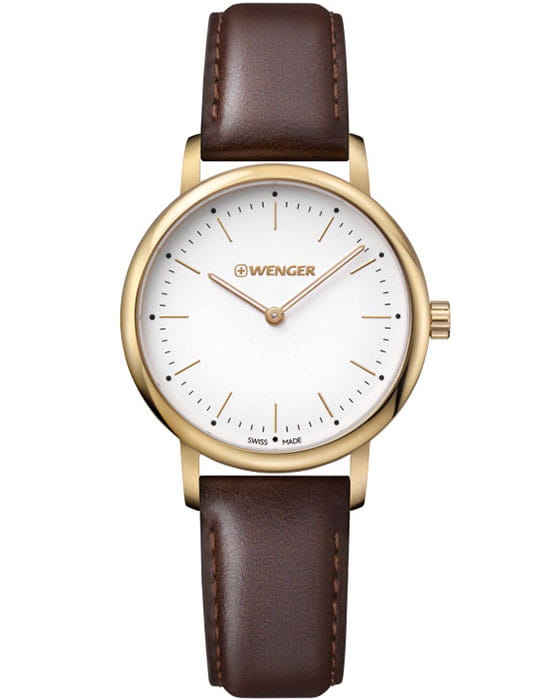 Стильные женские швейцарские часы Wenger 01.1721.112, кварцевый механизм с высокой точностью. Класс водозащиты: 100 метров, позволит плавать, нырять и заниматься другими водными видами спорта. Корпус часов изготовлен из стали, золотистого цвета.